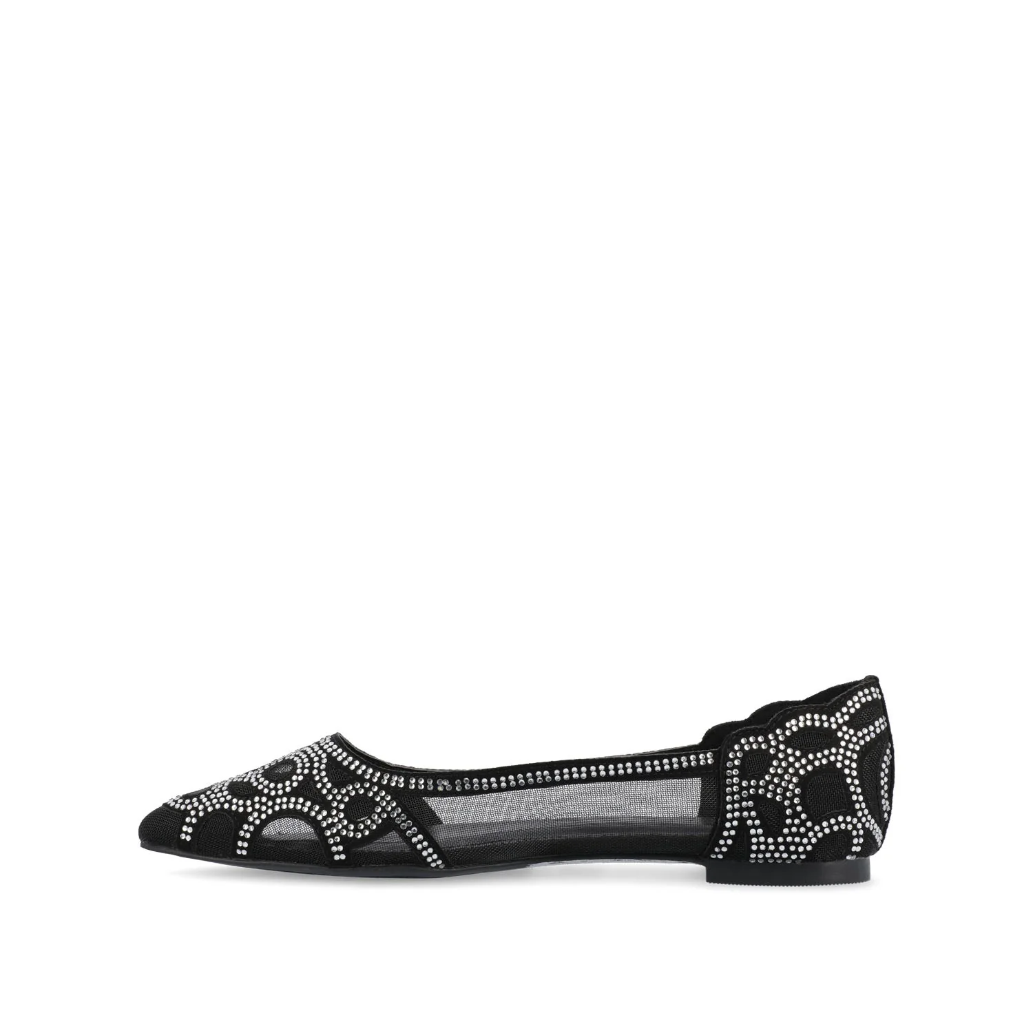 Step into sophistication with the Batavia flat from Journee Collection, featuring a pointed-toe design and dazzling rhinestone accents for a touch of glamour. The slip-on design offers easy wear, and the padded footbed ensures comfort for all-day wearability. With a modest 1/2-inch block heel and a combination of mesh and man-made uppers, the Batavia flat strikes a perfect balance between style and practicality, making it an elegant and versatile choice for various occasions.