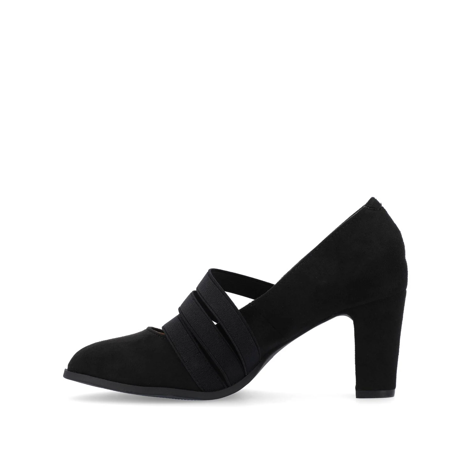 The Loren in narrow by Journee is a vintage-inspired pump with a fresh update. These classic pumps are topped with triple elastic strap details for added style.