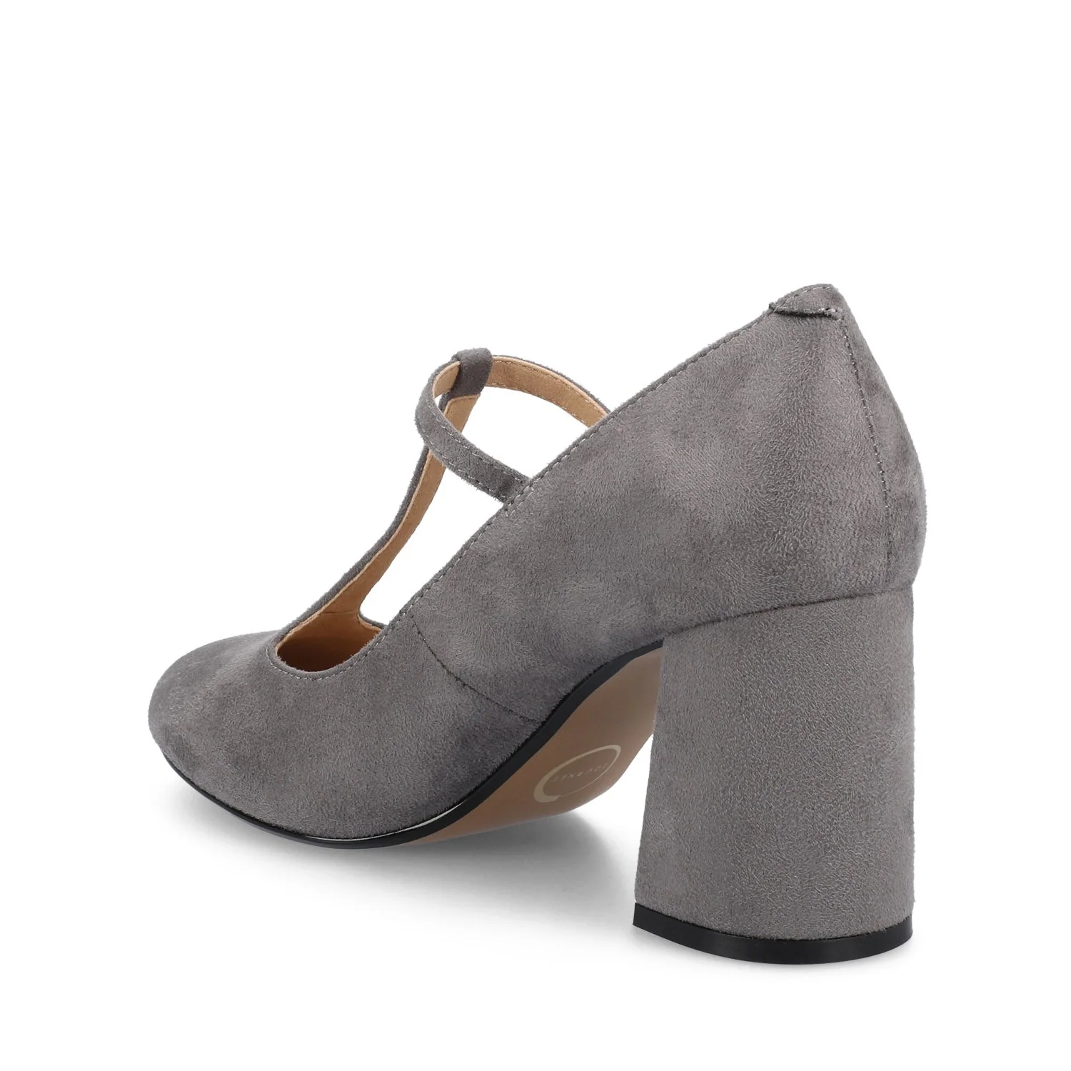 The Talani t-strap pump by Journee combines elegance and comfort with its sleek vegan leather and almond-toe design. Featuring a chic buckle detail and a 3-inch stacked heel, these dress pumps are perfect for a day at the office or an evening out. • 3-Inch Stacked Heel • 4 mm Journee Comfort System Insole • T-Strap Buckle • Almond-Toe • vegan leather All measurements are approximate and were taken using a size 6. Please note measurements may vary slightly by size.
